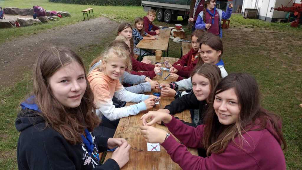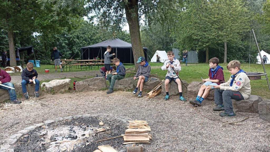 Zeltaufbau muss sein 😉Geschafft!Schnitzen fürs Stockbrot.Wir basteln ein Freunschafts-Armband.Schnitzeljagt zu Tagebau Garzweiler II.Reflexion und Lagerfeuer