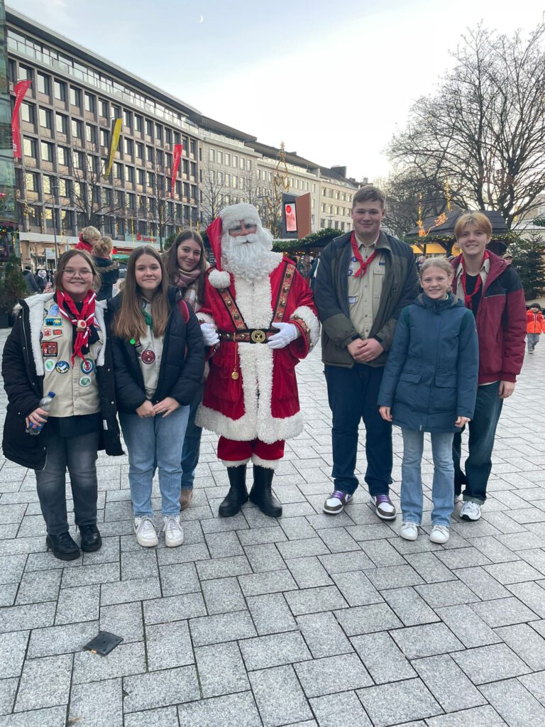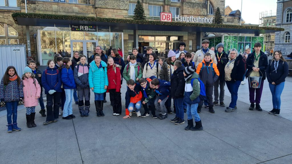 Am 17. Dezember 2023 machten sich die Pfadfinder Erkelenz auf den Weg nach Aachen, um das Friedenslicht zu empfangen. Die Roverstufe war bereits mit einem früheren Zug nach Aachen gereist, der Zug der Juffis und Pfadis hatte dann leider ca. 40 Minuten verspätung.