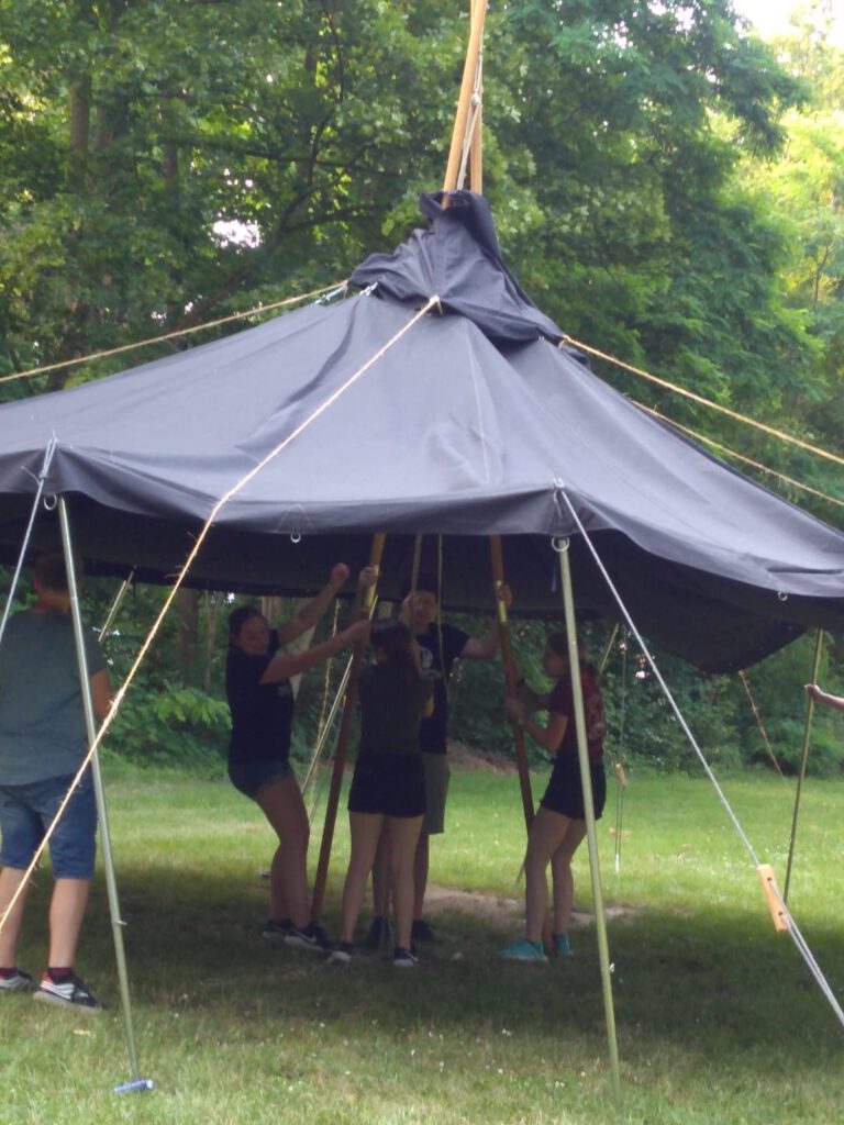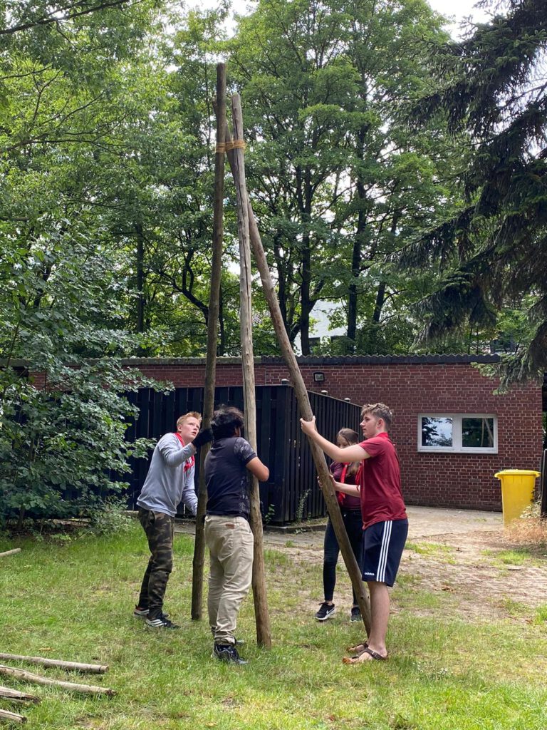 Hoch motiviert ging es für uns um 14 Uhr mit dem Fahrrad in Erkelenz los. Mit unserem Gepäck auf dem Rücken fuhren wir mit dem Fahrrad zum Haus St. Georg, wo wir eine halbe Stunde später ankamen. Das erste was wir machten war, trotz fehlender Anleitung, die Jurte aufzubauen.